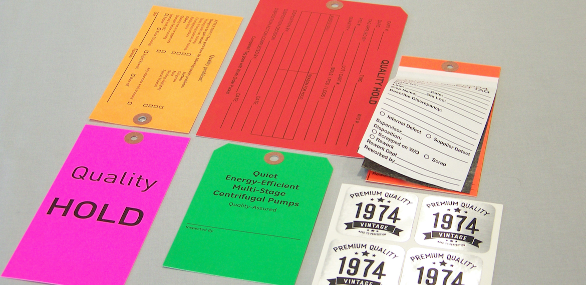 Single cut tags are available in almost any size. We are not restricted to the eight standard sizes. For paper stocks, standard cut corners as well as a fiber reinforced patched hole are typical, however, we can produce tags without these features. We also offer our single tags in a multitude of synthetic materials for when you need a tag to meet your demanding applications.